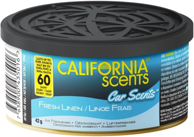 A California Scents Fresh Linen autóillatosító a frissen mosott ruhák üde, tiszta illatát hozza el autód belsejébe. Ez az aroma nyugalmat, otthonosságot és harmóniát sugároz, így minden utazás kényelmesebb és kellemesebb hangulatban telik. Praktikus konzerv kiszerelése és prémium minőségű illatanyagai gondoskodnak arról, hogy az illat hosszan tartson. Azoknak ajánlott, akik szeretik a letisztult, friss és diszkrét illatokat.